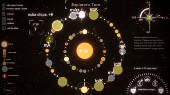 This project is a space-themed game that integrates top-down turn-based board gameplay with first-person planetary exploration.The core plot and key narrative turning points revolve around the question: "Is the star orbiting the explored planet actually a black hole?" Both perspectives are derived from the experiences of the protagonist Rowan across different timelines, collectively weaving a complete time-loop story centered on spiritual exploration and planetary discovery.